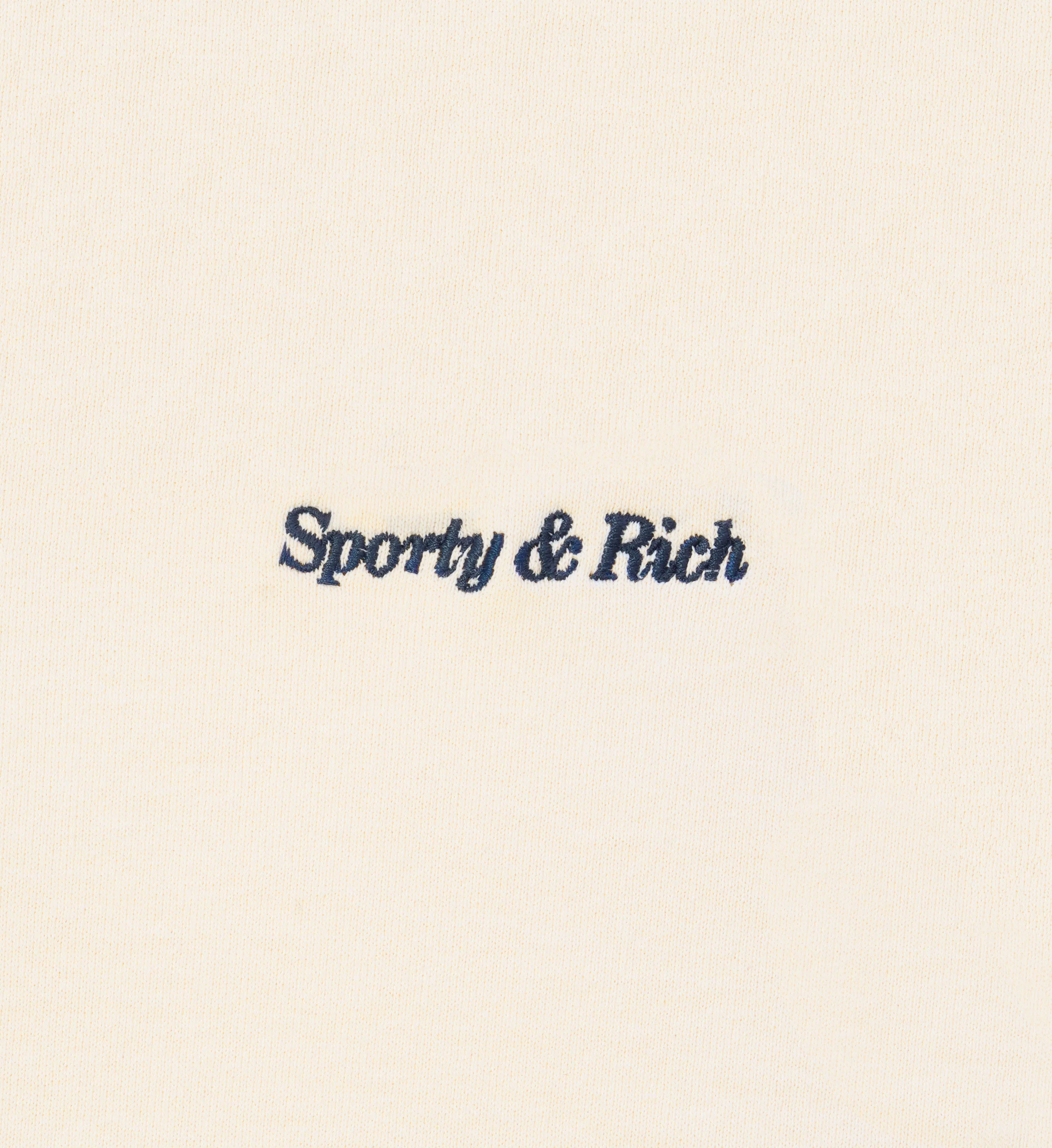 Our Classic Logo Polo in Cream/Navy. Constructed of 100% USA grown cotton, our Polos are pre-shrunk and fit slightly oversized with a cropped length. Our Polos are made in Los Angeles where our factory pays its employees above minimum wage + overtime and benefits. Model wears a size S.