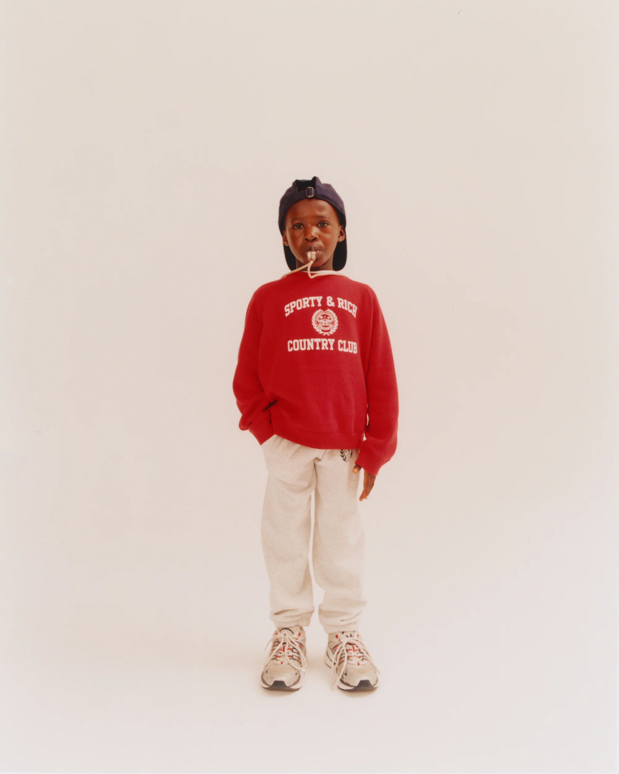 Our Kids sweatpants are made from a soft cotton blend. They are pre-shrunk and fit slightly oversized. These sweatpants are made in Portugal at a factory that has been producing cotton fleece clothes for decades.