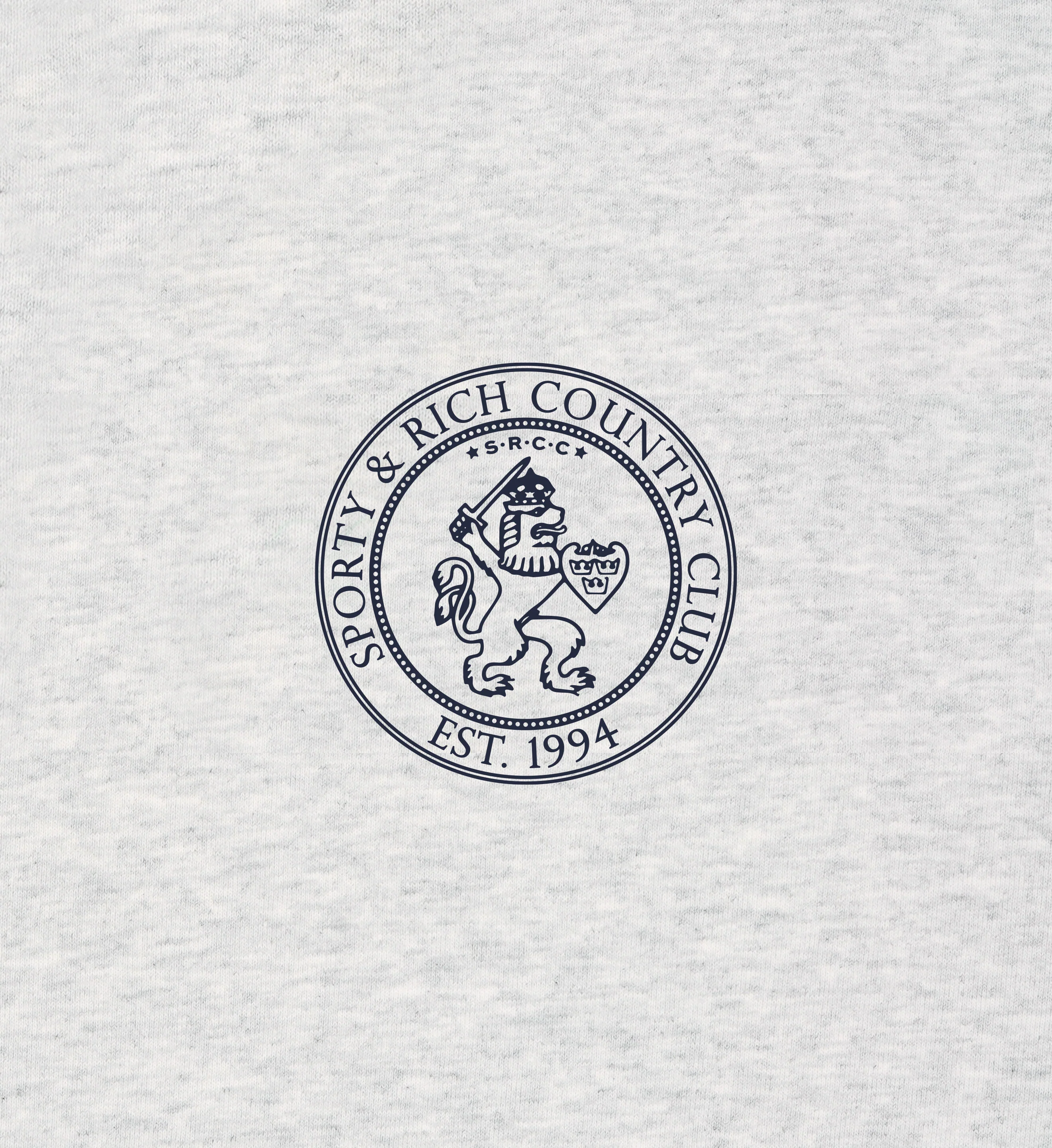 Our Lion Crest Quarter Zip in Heather Gray/Navy. Constructed of USA grown cotton, our quarter zips are pre-shrunk with a slightly oversized fit and a short length. Our quarter zips are made in Los Angeles where our factory pays its employees above minimum wage + overtime and benefits. Ruby is 5'8'/173cm and wears a size S.