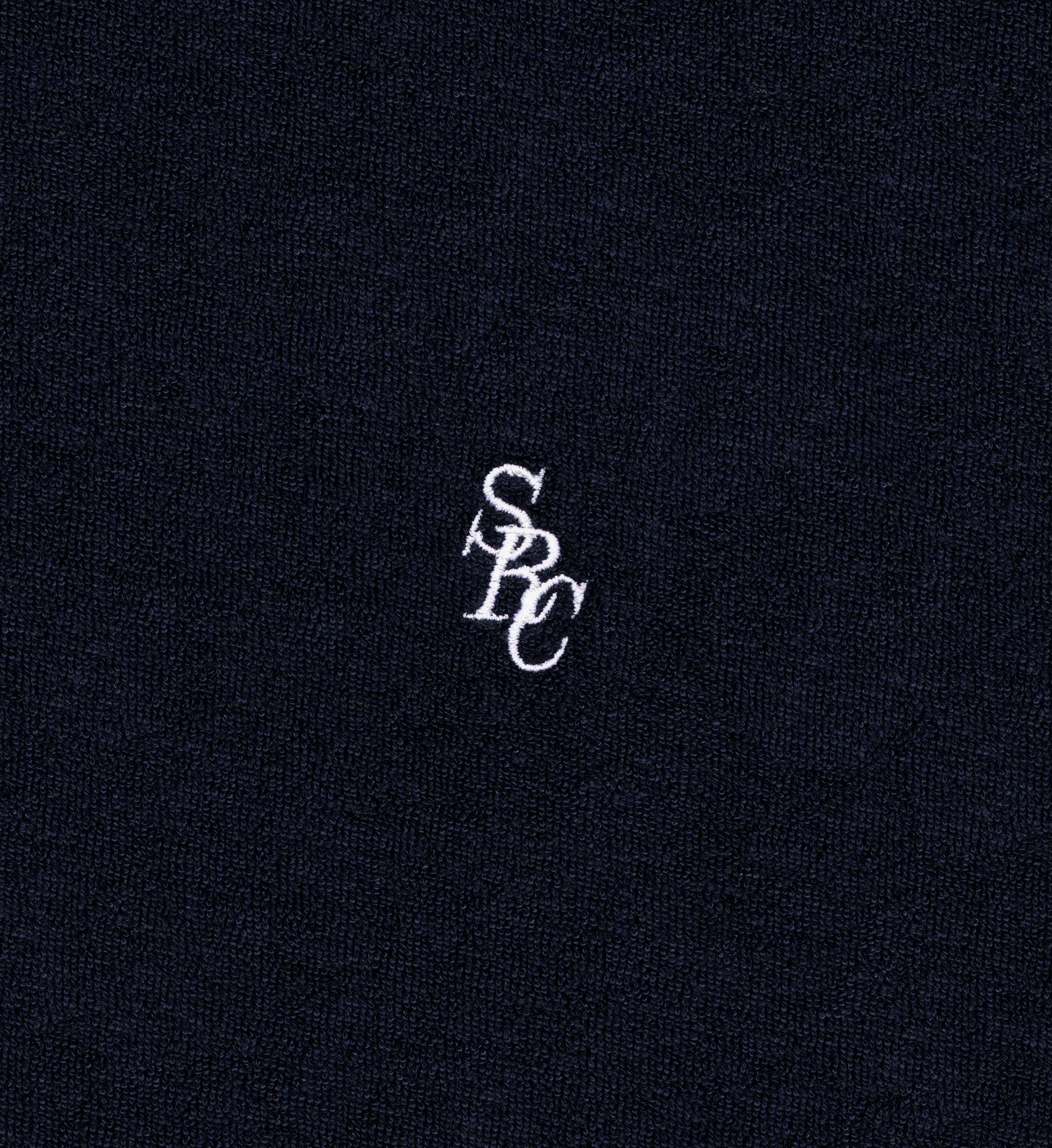 Our SRC Longsleeve Terry Polo in Navy. Constructed of 100% cotton and made in Portugal, our Terry Polos feature ribbed sleeves, bottom hem and a spread collar. Boxy fit. Luna is 5'10' and wears a size S.